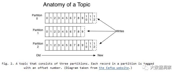 Messages (records) in Kafka get written to a topic partition. A Kafka cluster can have multiple topics, and each topic can have multiple partitions (Fig. 2). Each partition is an ordered, immutable sequence of records that is continually appended to.