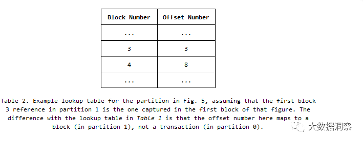 This means that the Kafka-assigned offset numbers cannot map to the OSN-assigned (contiguous) block numbers, so a block-to-offset number lookup table, similar to what we’ve seen in the previous solution, would also need to be maintained here. Table 2 shows an example of this.