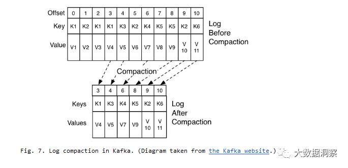 Solution 6c. Could log compaction help? Log compaction ensures that Kafka retains the last known value for each message key in a partition (records in Kafka are key/value pairs) — the diagram in Fig. 7 depicts this better: