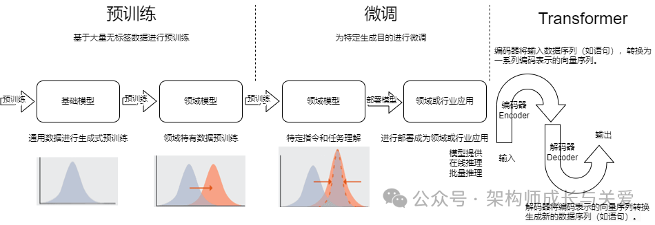 图10-15 模型预训练、微调以及基于Transformer的生成式AI应用部署和使用过程