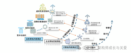 随着技术进步、企业架构实践以及企业架构标准理论的发展,企业架构的风格和架构思维也需要不断调整和演进。