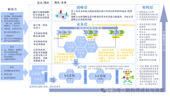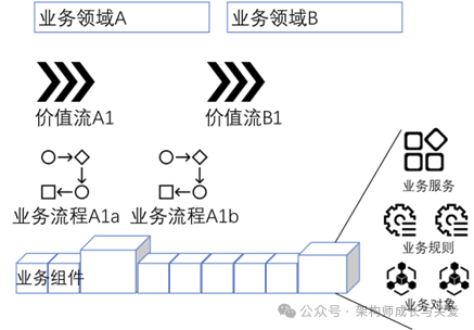 1.按照行业参考架构,基于MECE原则划分业务基本能力构建块、形成图景,统一业务语言。