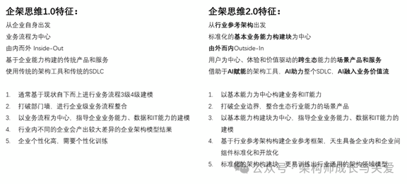 开放AI时代的企业架构2.0思维是基于行业实践、标准理论发展和技术进步提出的,主要体现在以下几个方面: