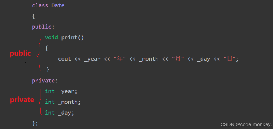 等成员的声明/定义在哪⾥,就会报错。指定类域Date,就是知道print