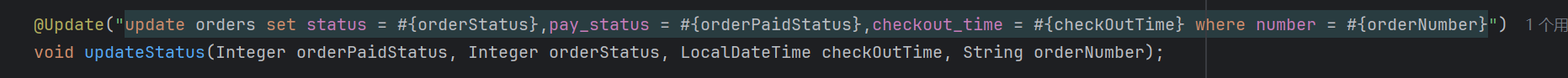 2.在OrderMapper中添加一个方法(因为跳过了支付,而对应的订单数据我们是需要修改的)