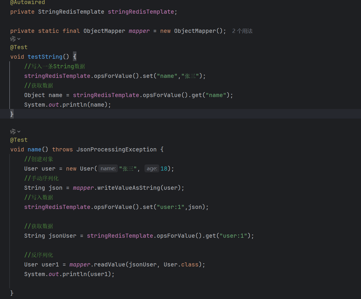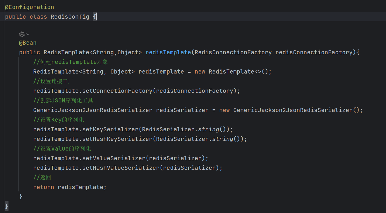 4.解释:SpringRedisTemplate是Spring提供好的,直接注入就可以使用,并且key与value都是使用的String序列化器,因此需要手动转换对象