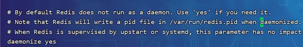 4.找到守护进程,修改为yes后即可后台运行: 先退出编辑,然后输入/daemonize即可快速找到对应daemonize(没有找到就按n切换到下一个daemonize)