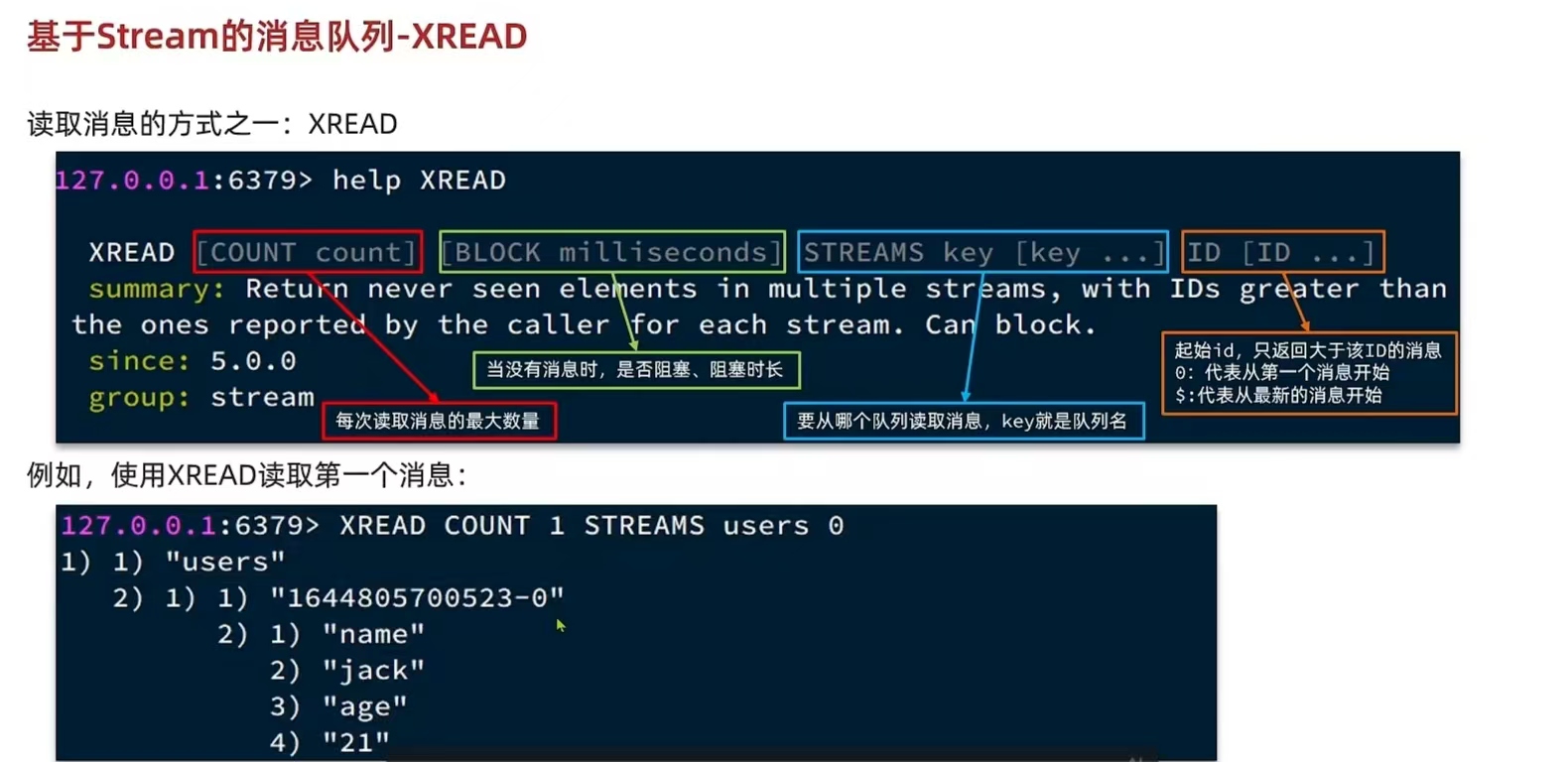 命令XREAD特点: