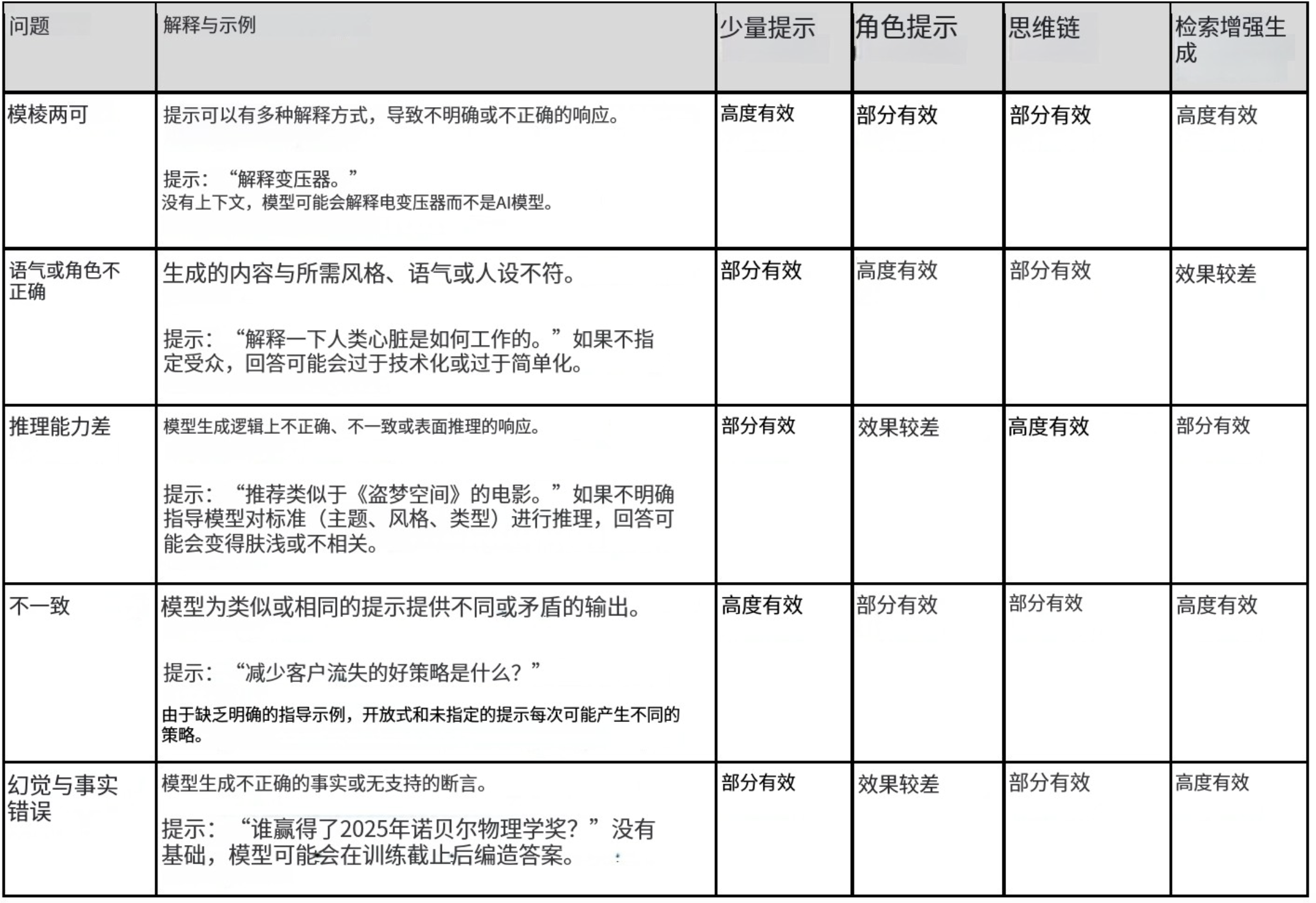 表 1:提示问题以及何时应用每个模式