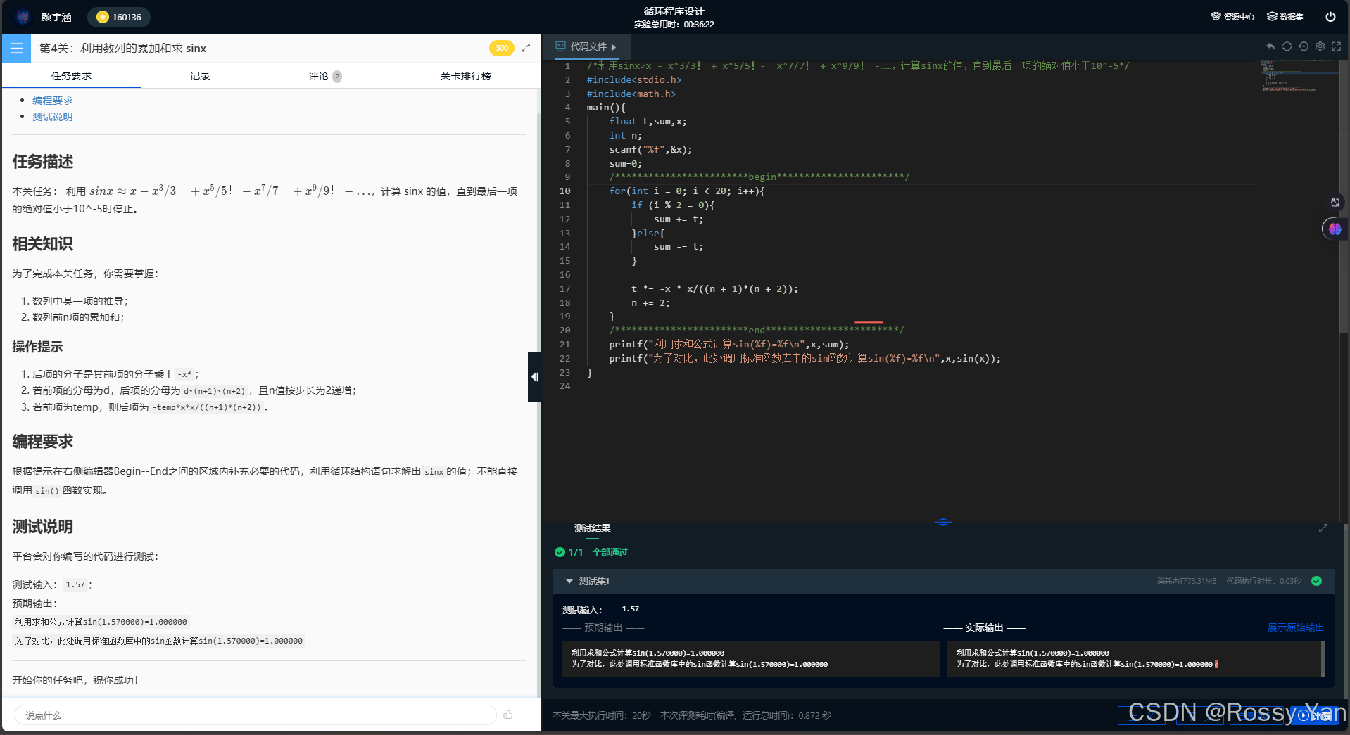 的值增加 2,以符合级数的项数变化规律。根据提示在右侧编辑器Begin--End之间的区域内补充必要的代码。
