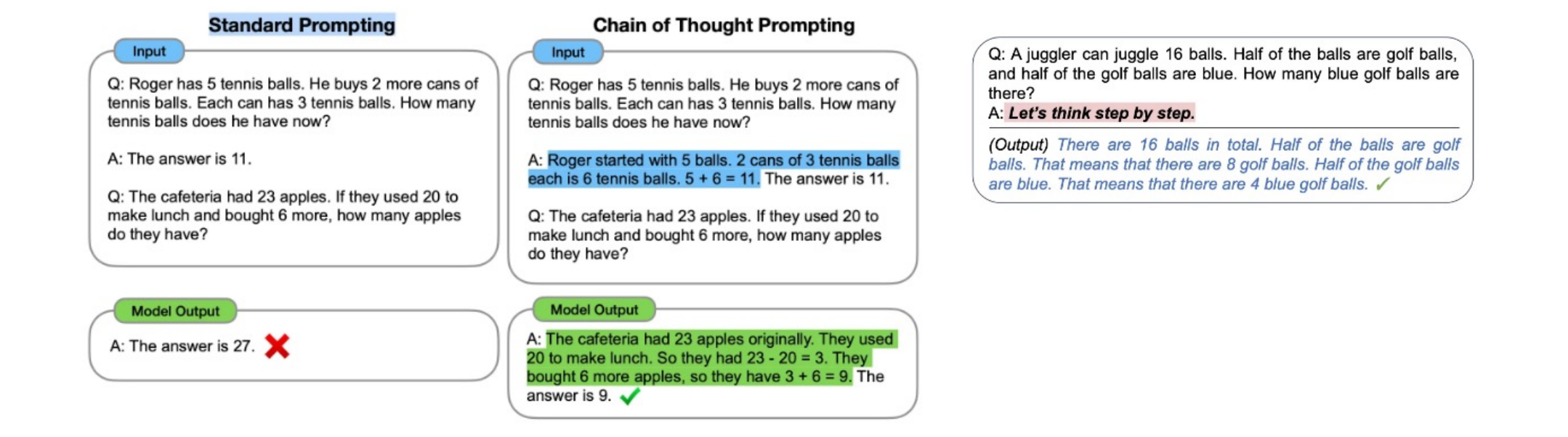 Chain of Thought,让模型输出更多的上下文与思考过程,提升模型输出下一个token的准确率。