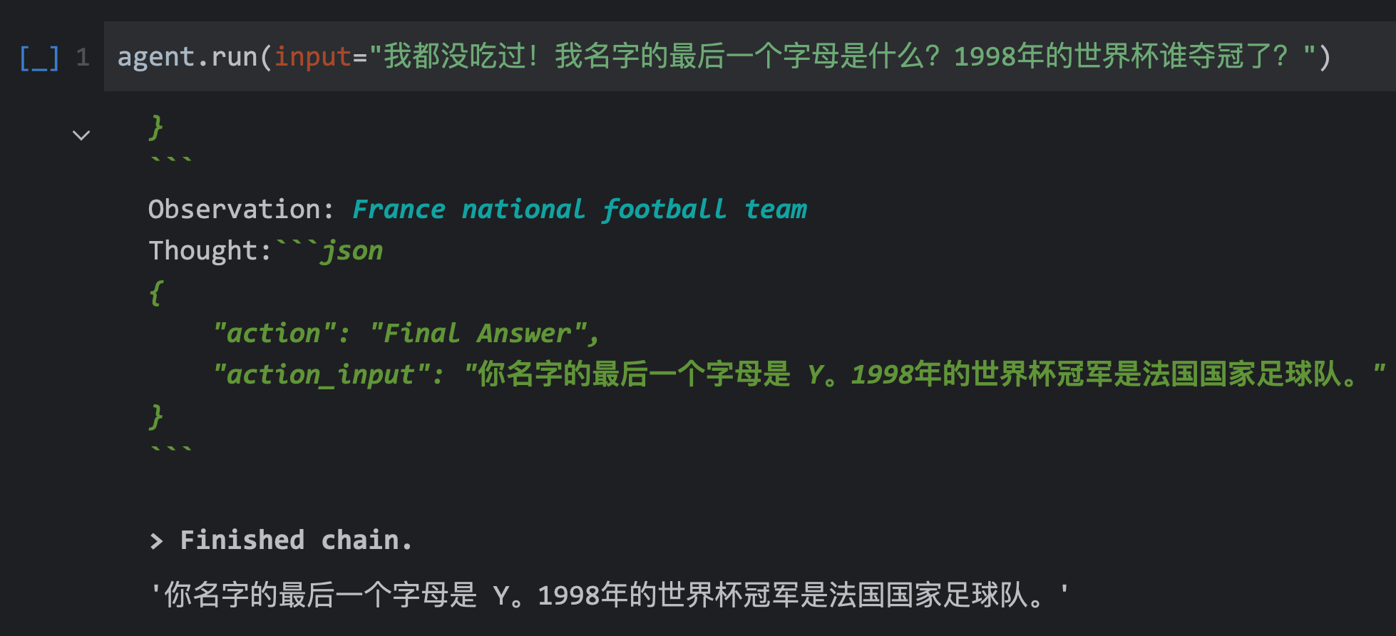 agent.run(input="我都没吃过!我名字的最后一个字母是什么?1998年的世界杯谁夺冠了?")