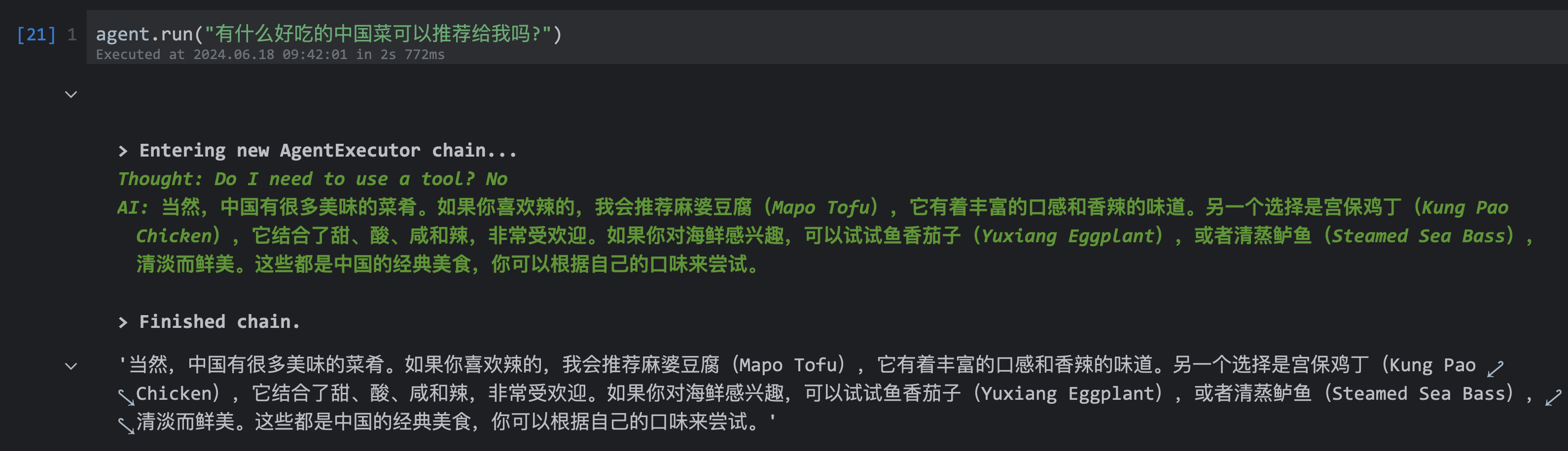 agent.run("有什么好吃的中国菜可以推荐给我吗?")