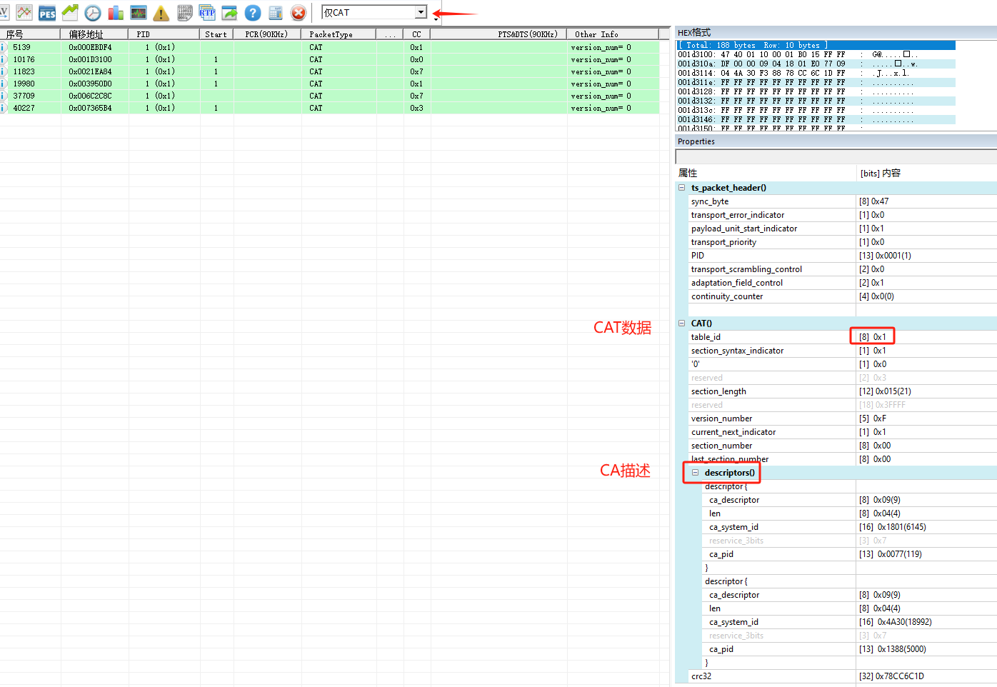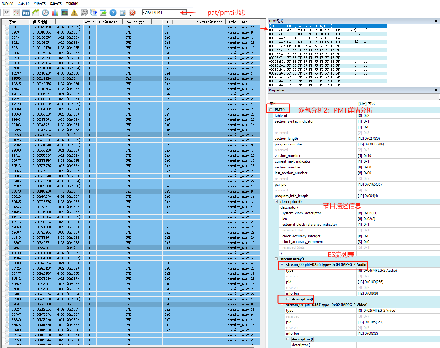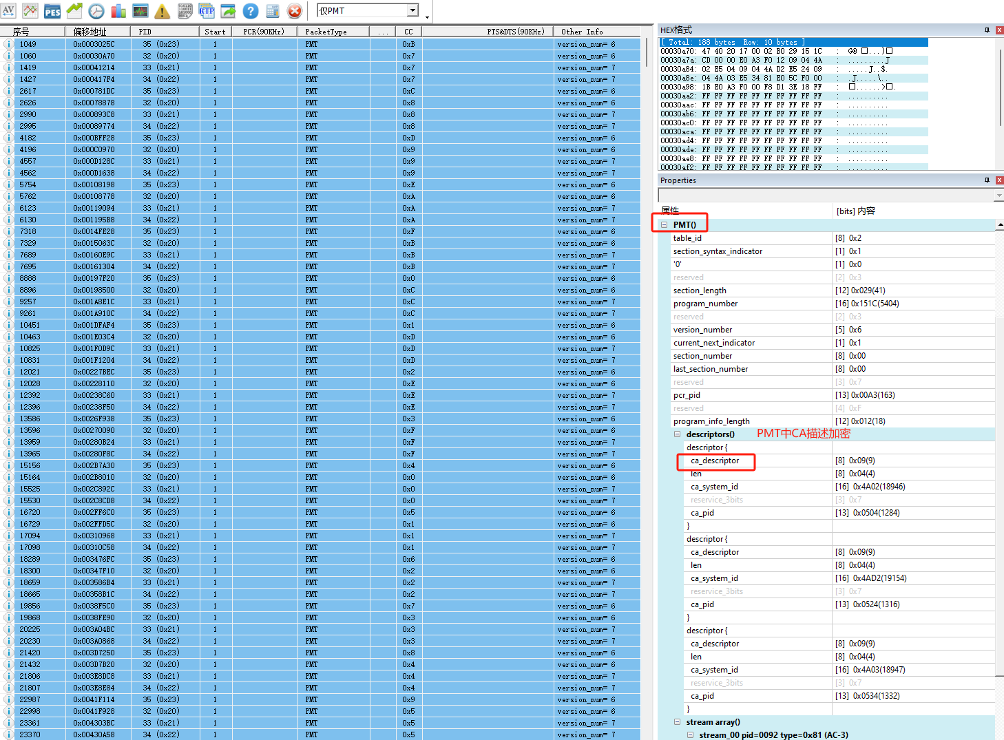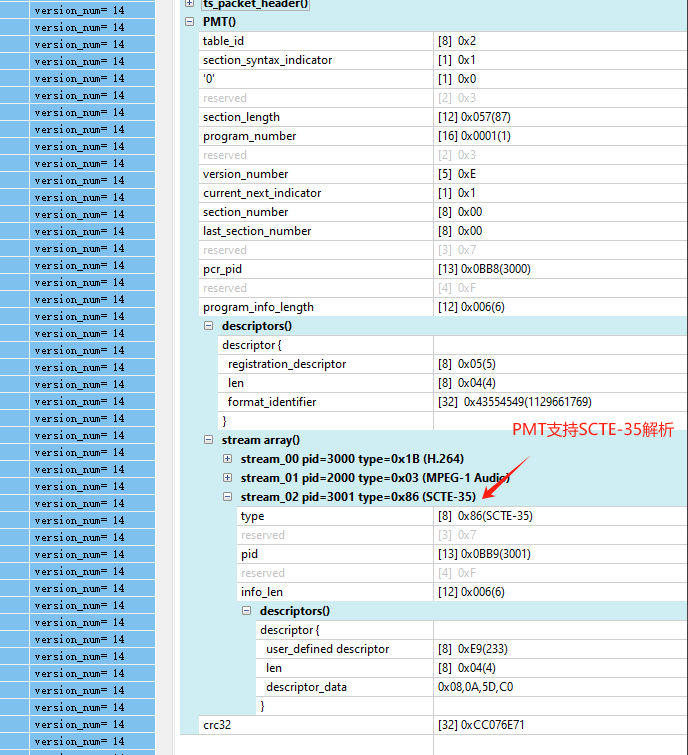 3.PSI/SI附加信息:PAT/PMT/SDT/BAT等section 版本号,关注观察版本变化