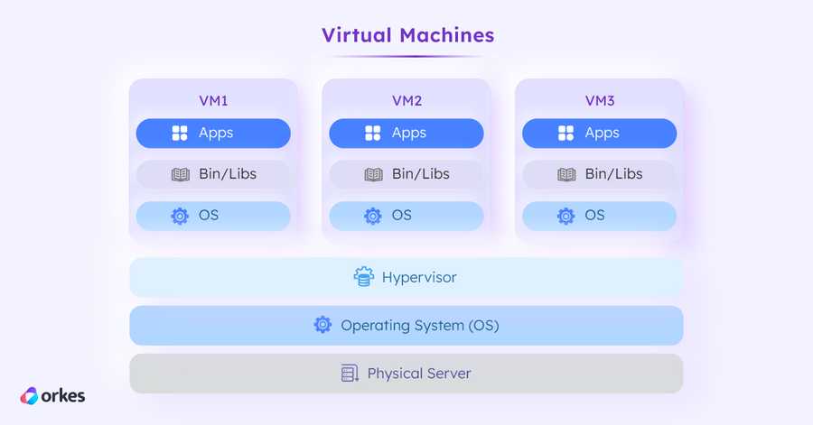虚拟机图示,虚拟机通过管理程序运行在同一物理机上: