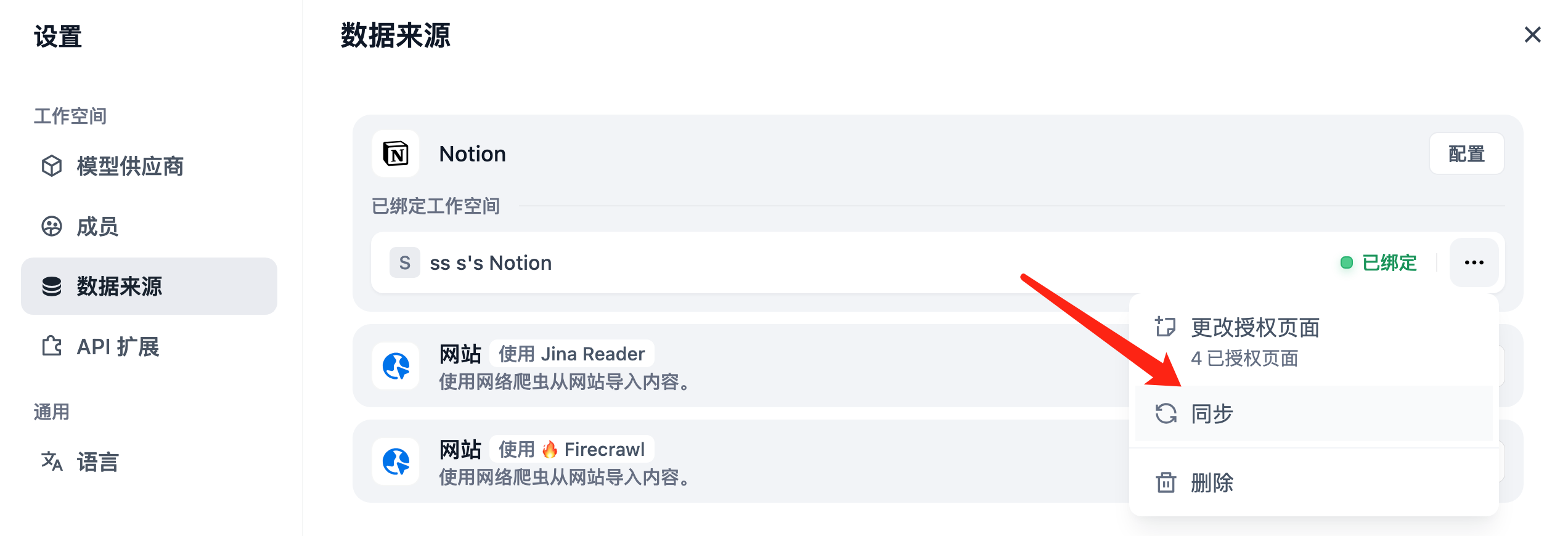 如你的 Notion 内容有更新,可以在知识库的 文档列表页中点击对应内容页的 同步 按钮进行数据同步。同步文档涉及嵌入过程,因此将消耗嵌入模型的 Tokens。