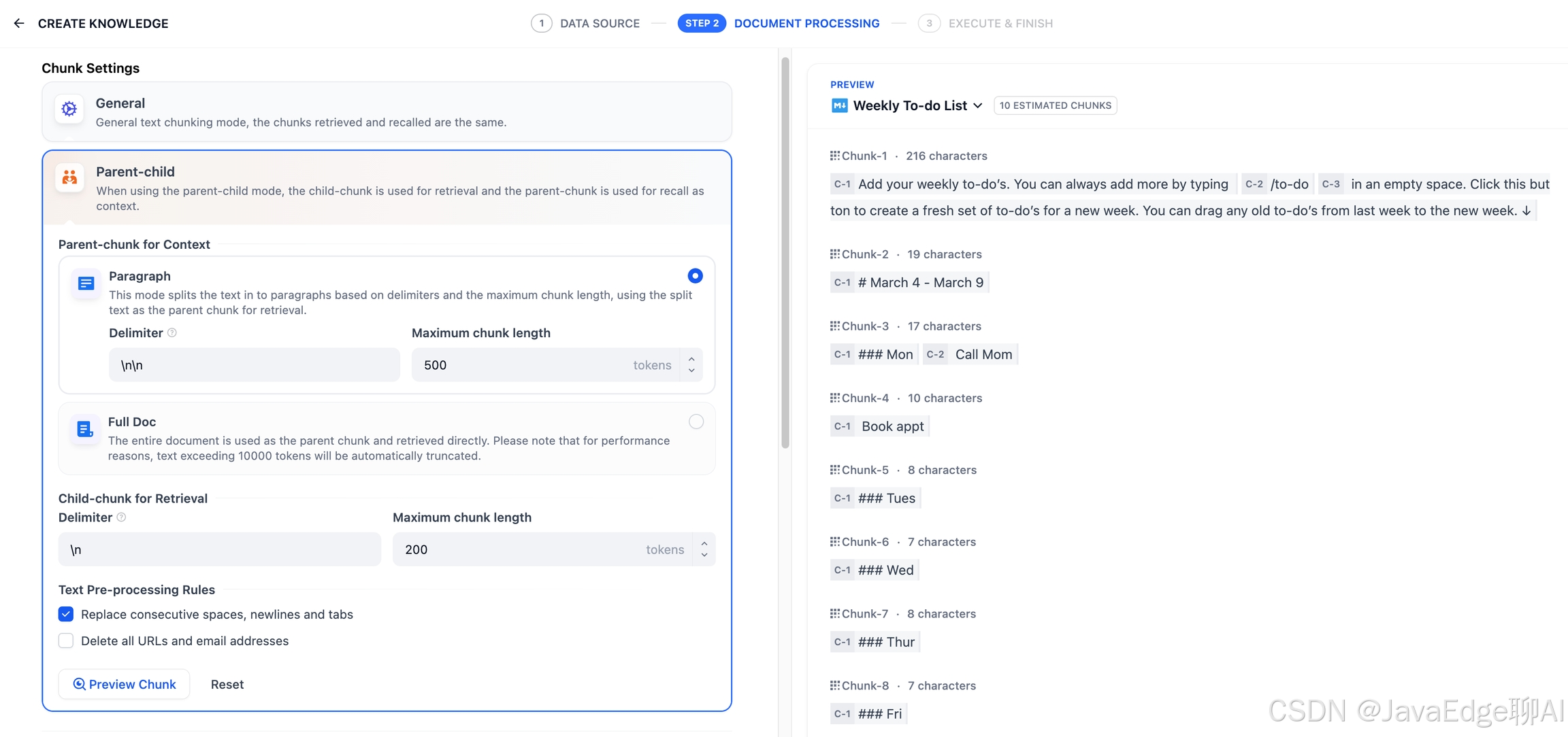 选择知识库的分段设置和索引方式,保存并处理。等 Dify 自动处理数据。Dify: