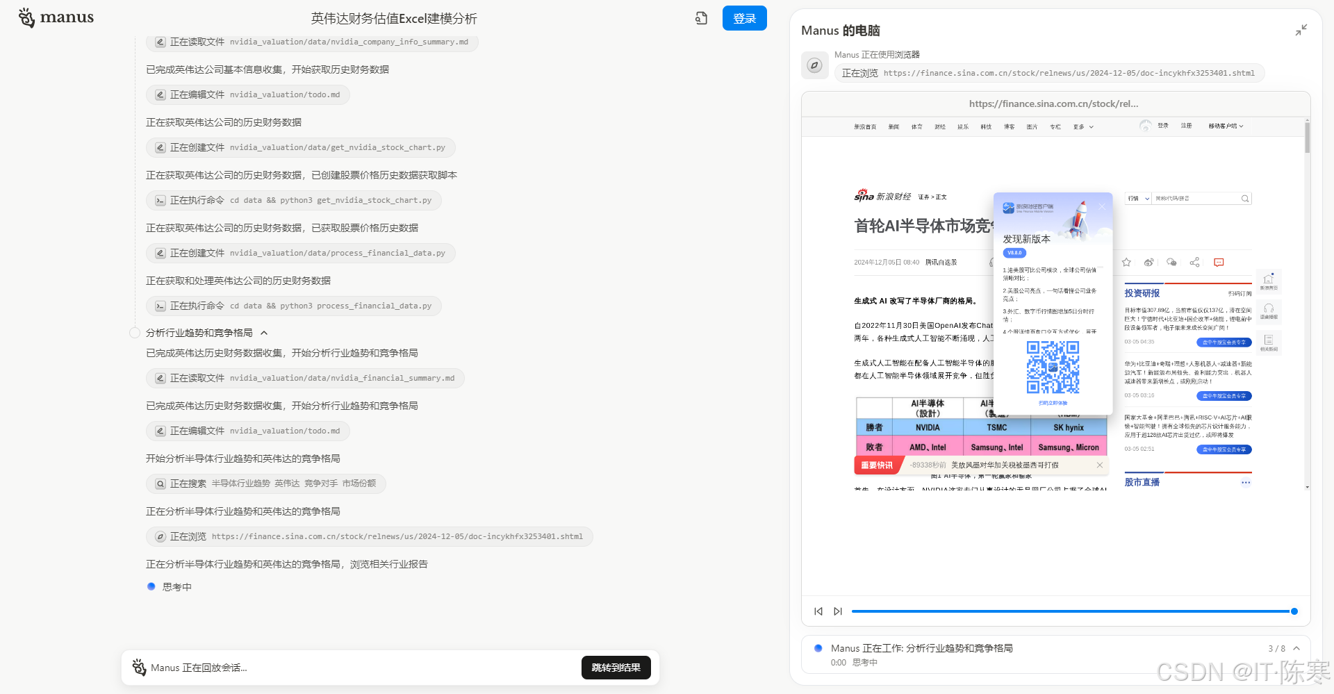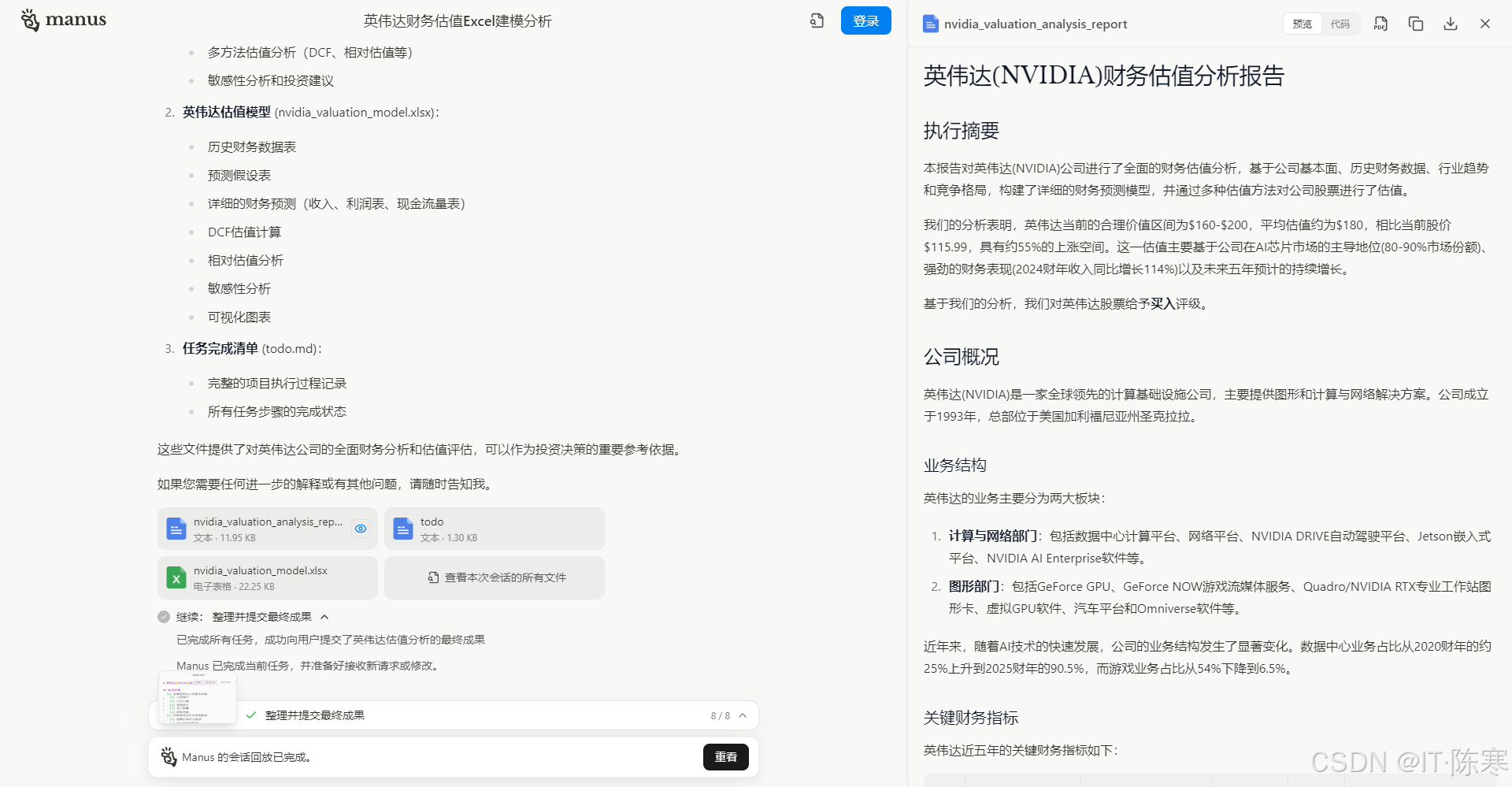 对于金融从业者和商业决策者而言,精准的财务模型是不可或缺的工具。Manus平台提供了一个交互式的财务估值模型搭建环境,使用户能够直观地构建和调整模型,实时观察数据变化与风险评估,提升决策的科学性和准确性。 立即体验 »