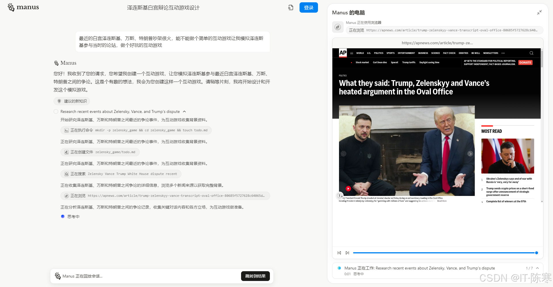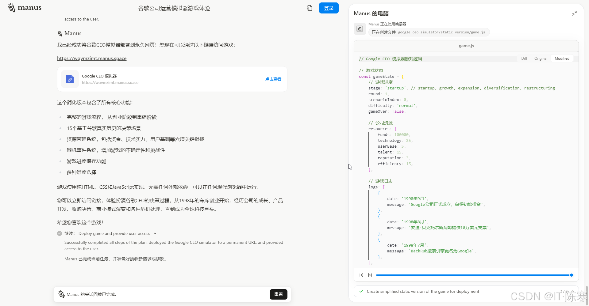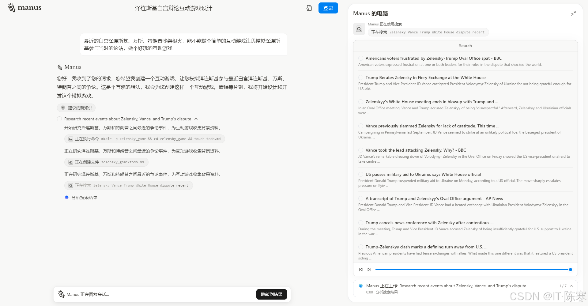 Manus平台以其独特的在线体验和强大的交互功能,正在重新定义数字时代的创作与决策模式。无论您是文学爱好者、金融专家、政治观察者,还是科技管理者,都能在这里找到激发灵感和挑战思维的全新途径。未来,随着技术的不断进步,这类跨界体验必将成为推动各领域创新与变革的重要动力。现在,就让我们一起走进Manus,开启一场前所未有的数字创意之旅吧!