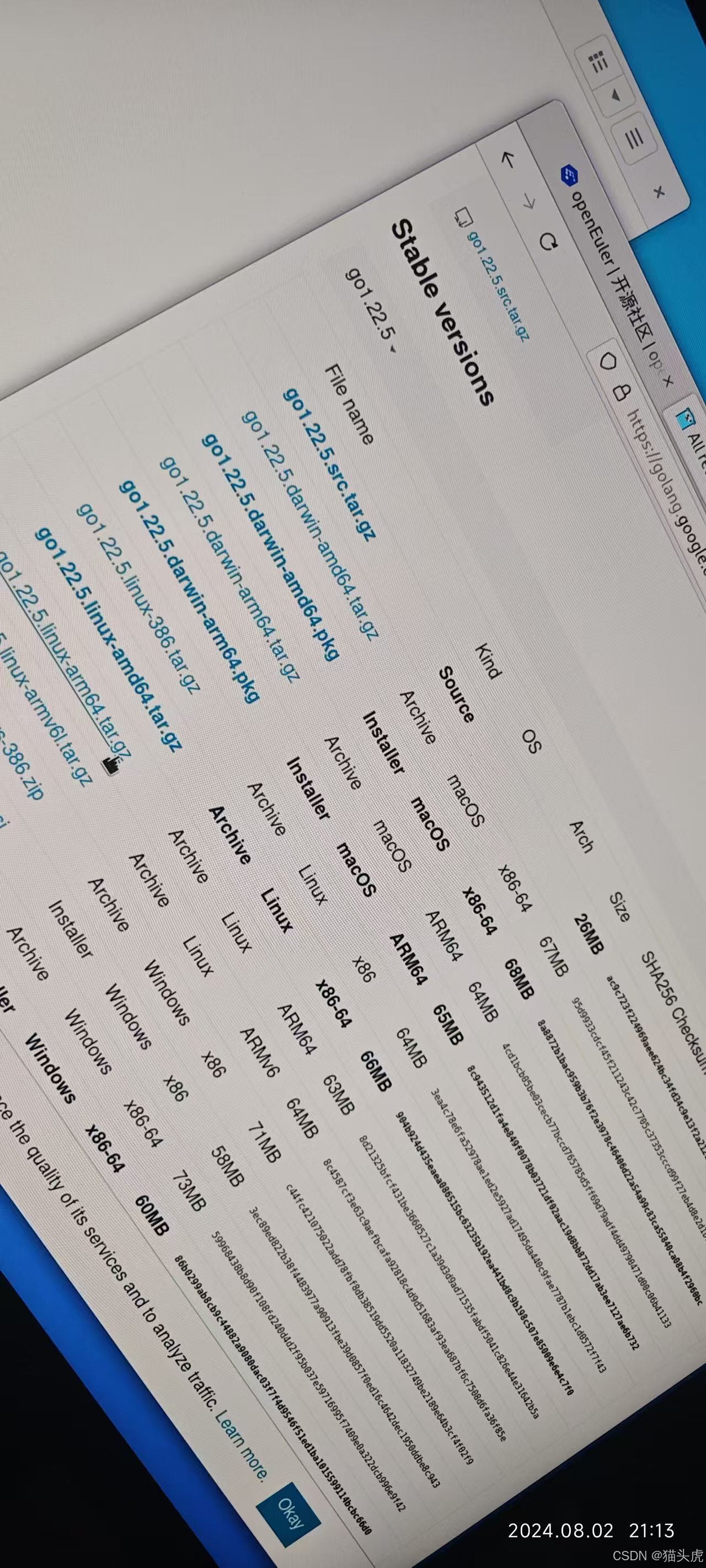 wget https://golang.org/dl/go1.22.5.linux-amd64.tar.gz有时我们可能会遇到网络问题,导致无法从官方镜像下载。这时我们可以使用国内的镜像站点来下载最新版本的 Go Lang。以下是具体操作步骤: