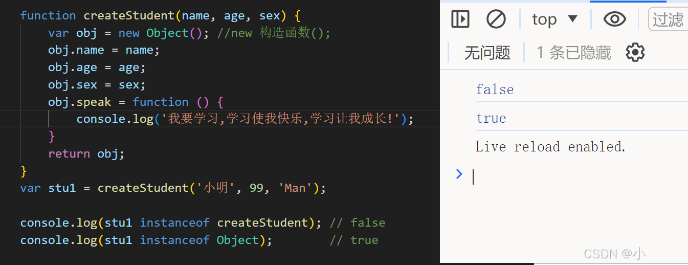 运算符来判断对象的类型。例如,stu1 instanceof createStudent