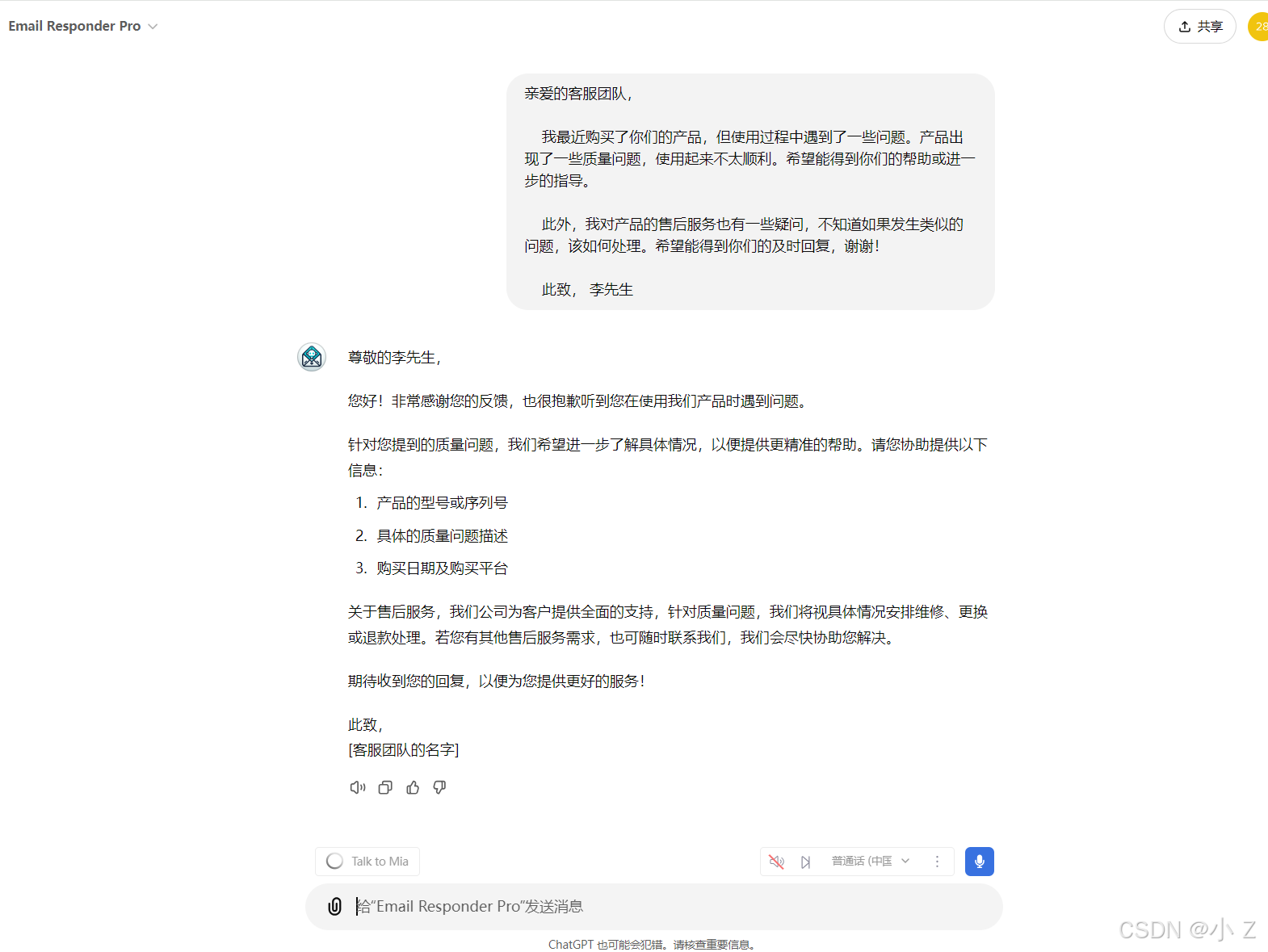 ,复现类似ChatGPT中的GPTs效果。Email Responder Pro