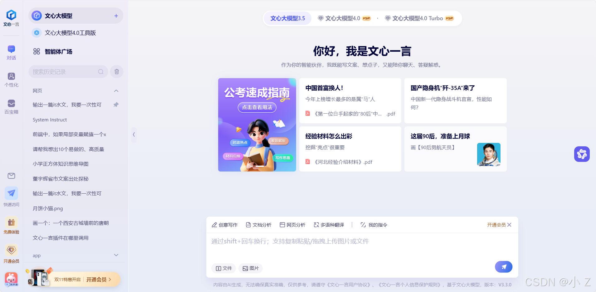 这里以文心一言为例: