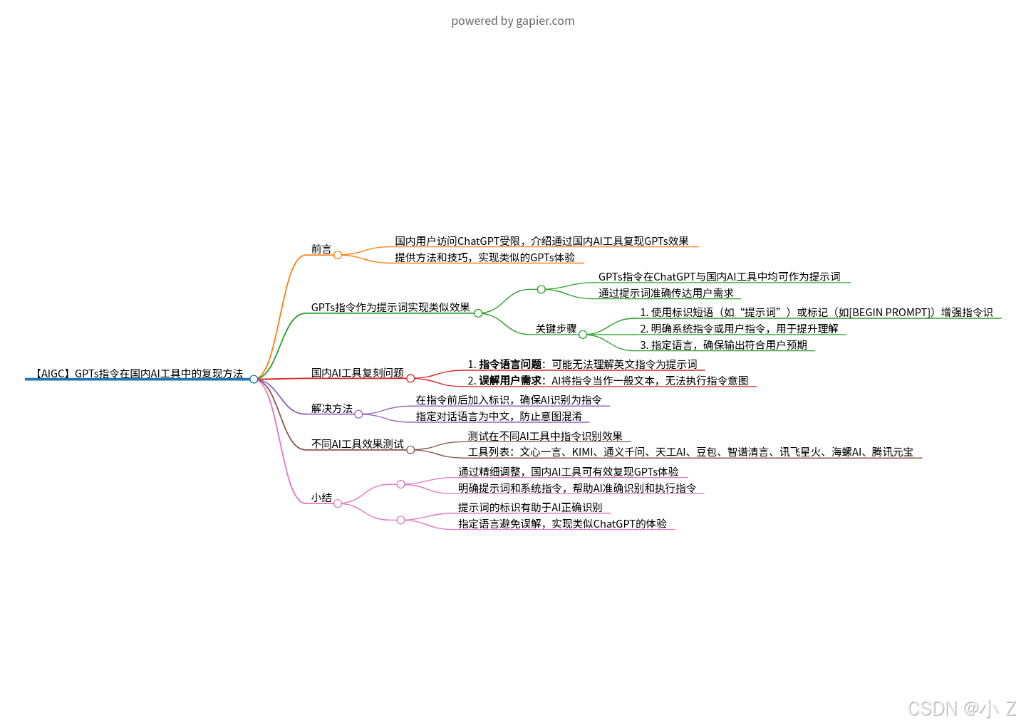的指令通常是英文的,如果直接使用,国内的大语言模型可能会将其识别为要翻译、总结和概括的英文文本,而不是提示词,从而无法达到预期效果。