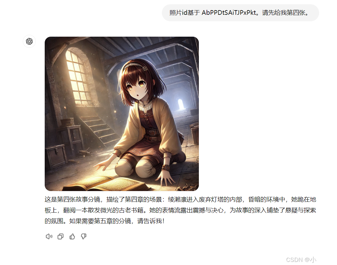 根据第一张照片,再继续生成故事背景一致的分镜镜头,要求画面中主人公的面部特征与服