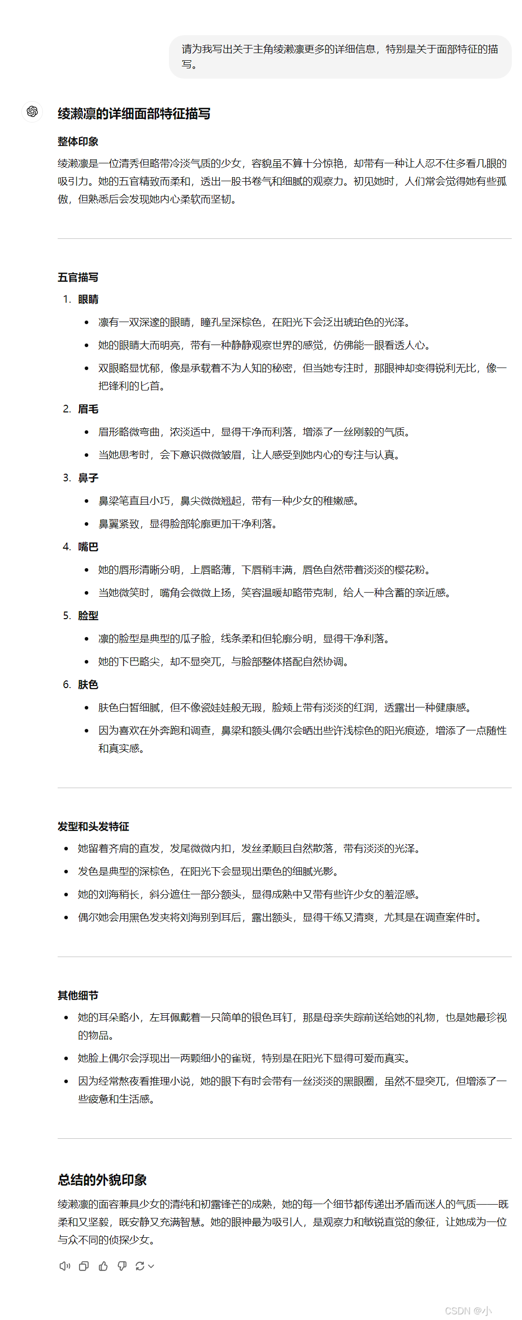 之后,可以通过深入描写角色,使角色形象更加生动具体,例如为主角补充详细的面部特征