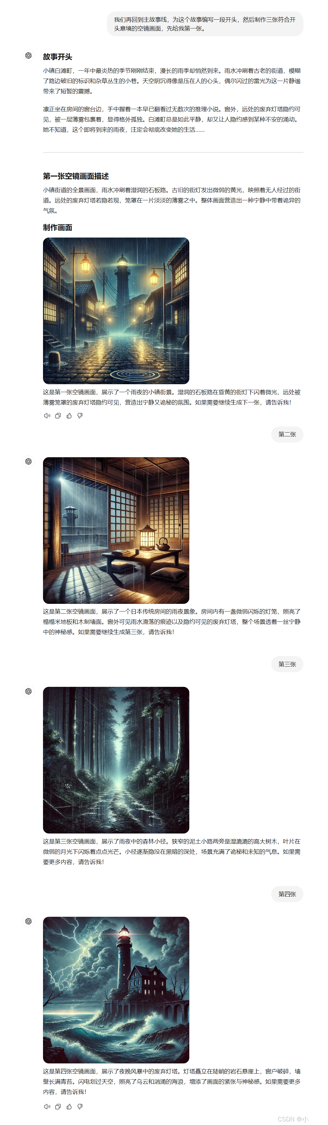 我们再回到主故事线,为这个故事编写一段开头,然后制作三张符合开头意境的空镜画面,