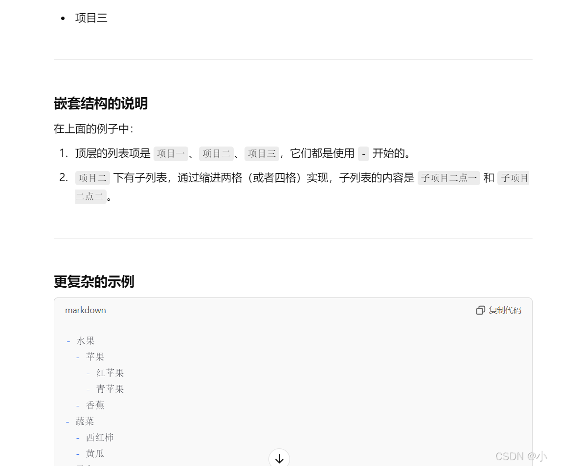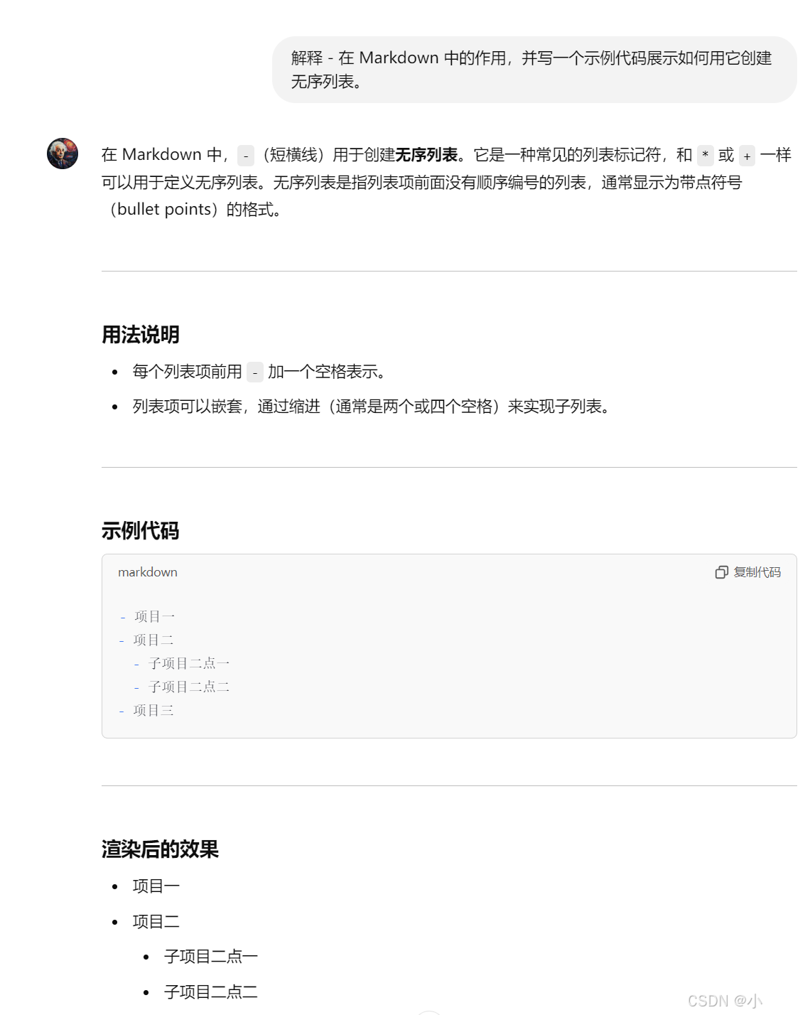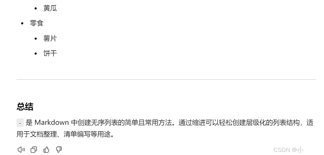 应用:在 Markdown 或其他文本编辑工具中,用于列举事项。 示例: