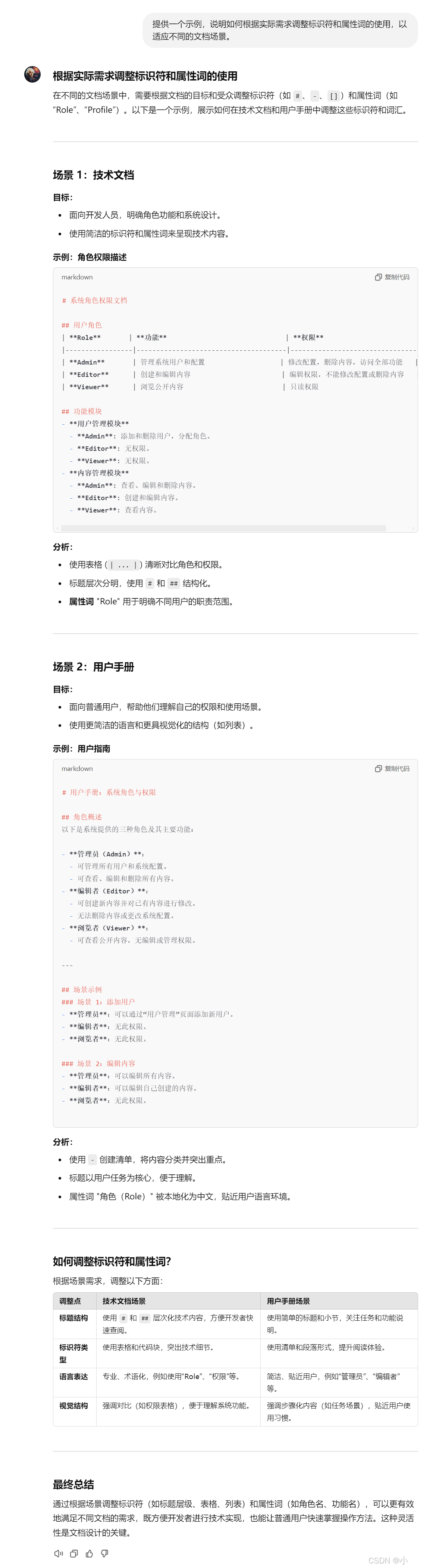 等常见符号在文档结构化和信息组织中的重要性。随后,深入探讨了 属性词的选用及其在信息清晰表达中的关键作用,例如 "Role"