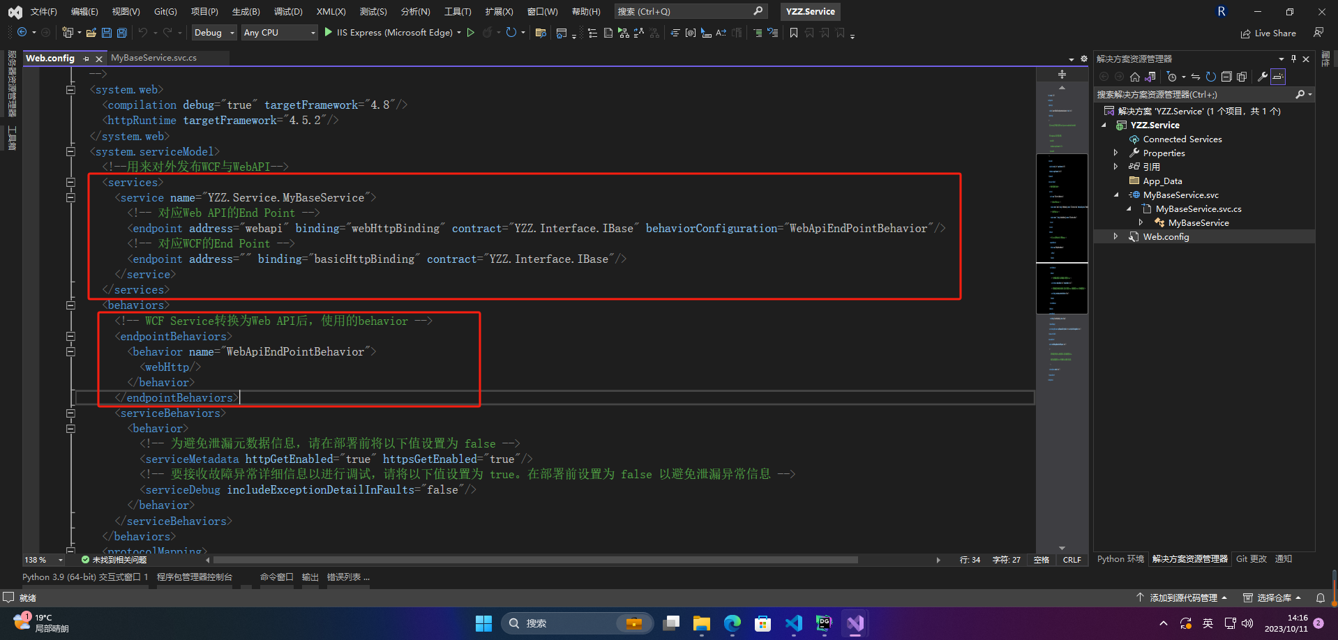 <endpoint address="webapi" binding="webHttpBinding" contract="YZZ.Interface.IBase" behaviorConfiguration="WebApiEndPointBehavior" />