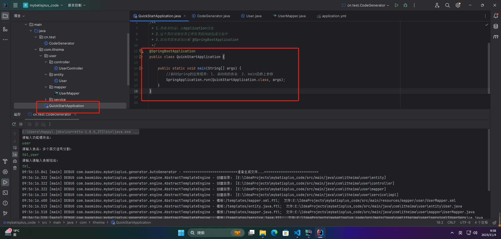 }右键运行main函数,在控制台输入功能模块名,表名,再按回车即可