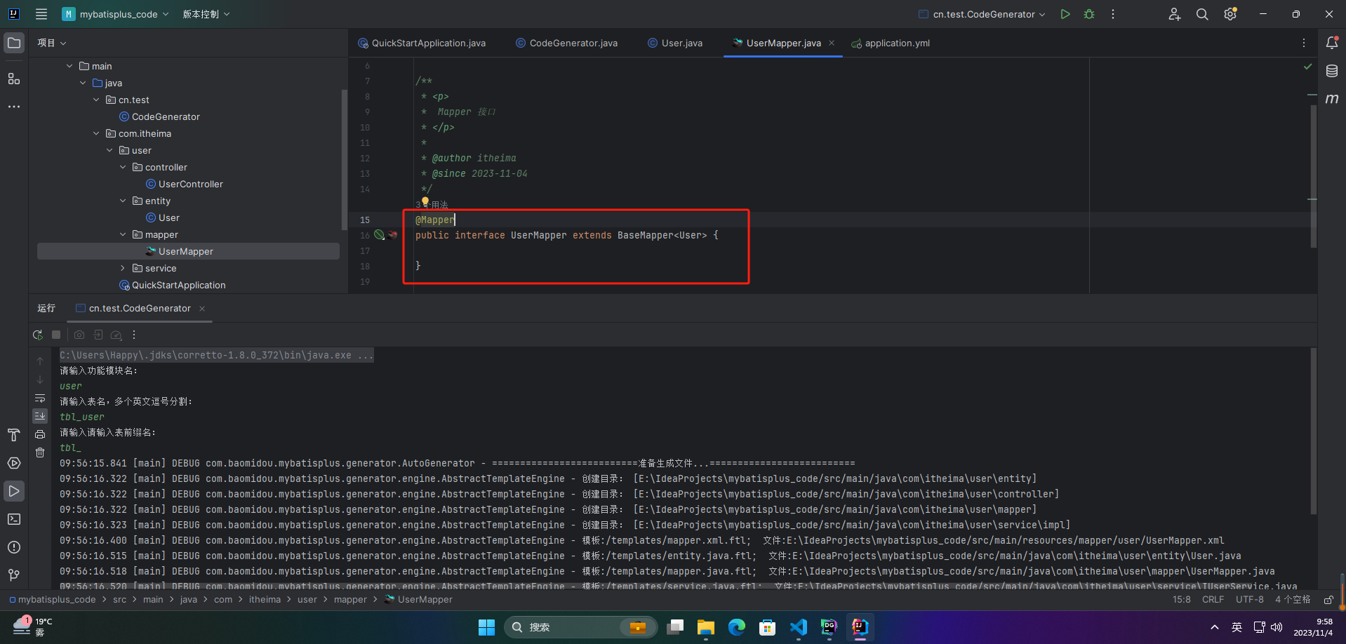 以后只需要创建好表,然后entti实体类,dao、service、controller都可以自动生成.