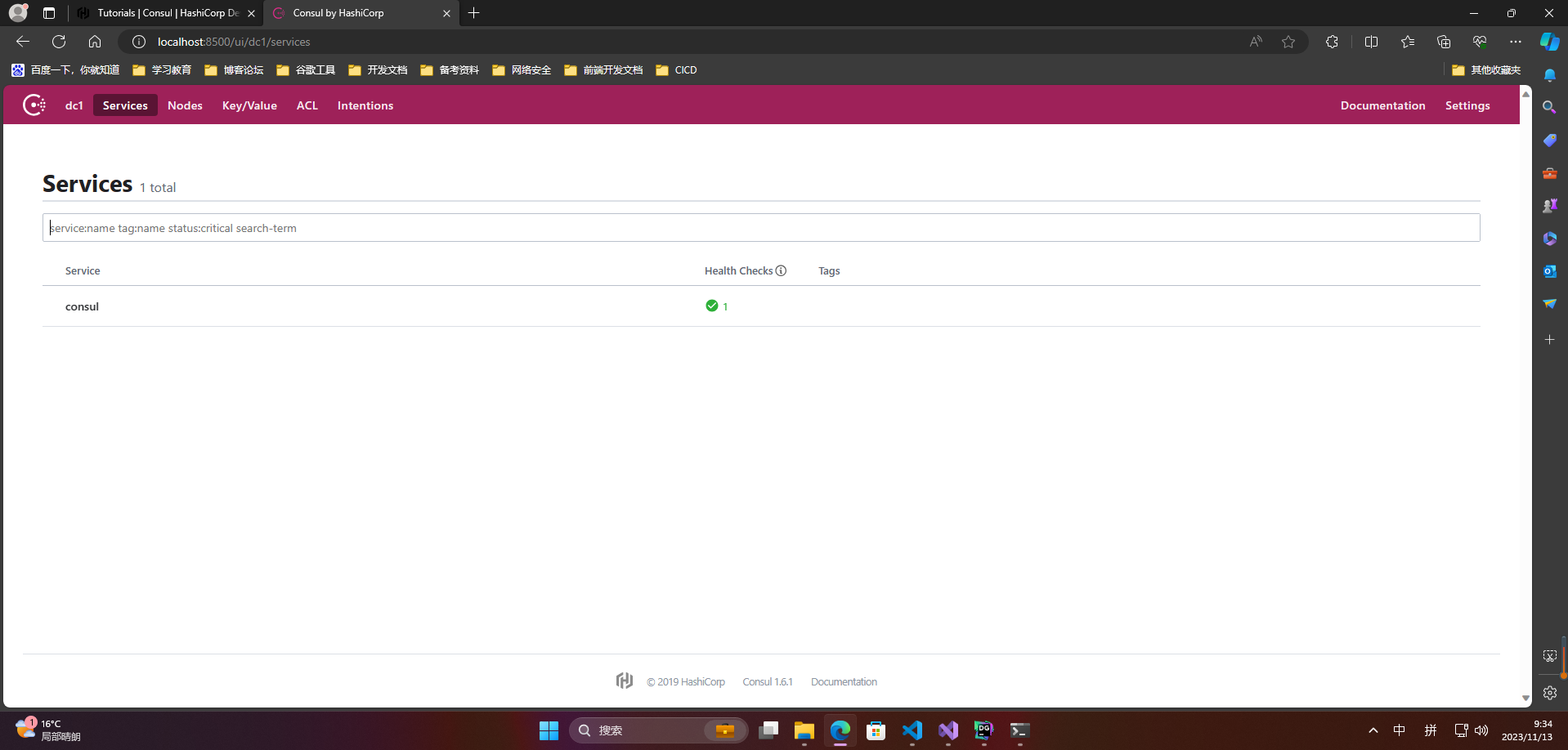 通过以下地址可以访问Consul的首页:http://localhost:8500