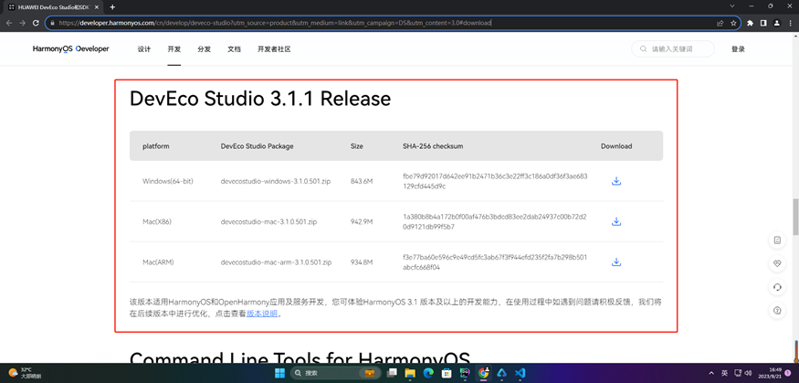DevEco Studio下载地址:HUAWEI DevEco Studio和SDK下载和升级 | HarmonyOS开发者