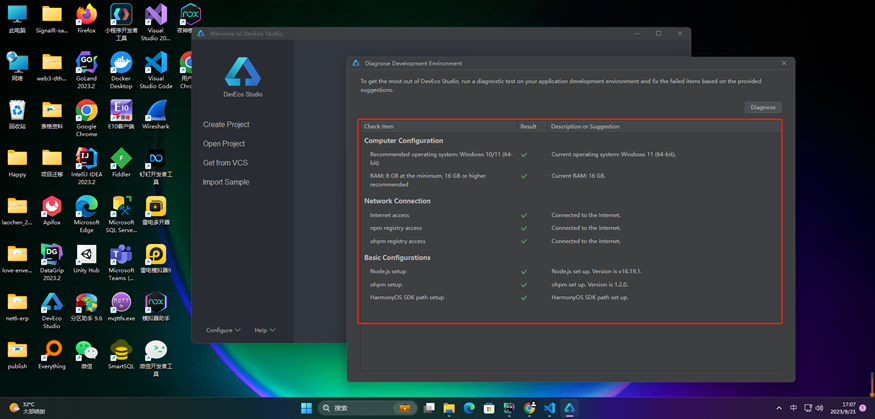 1、打开项目,从欢迎页进入:底部菜单选择“Help > Diagnose Development Environment”