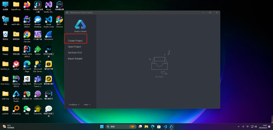 1、打开DevEco Studio,菜单选择“File > New > Create Project”,创建一个新工程。