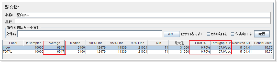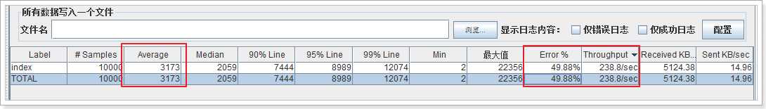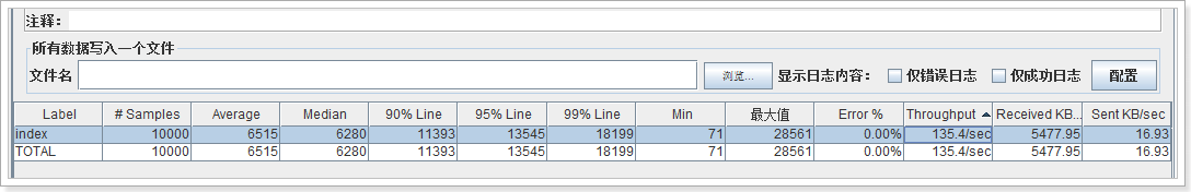 1000个线程,每个线程循环10次,也就是tomcat会接收到10000个请求。
