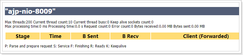 在服务状态页面中可以看到,默认状态下会启用AJP服务,并且占用8009端口。