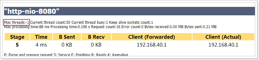 在页面中显示最大线程数为-1,这个是正常的,仅仅是显示的问题,实际使用的指定的值。