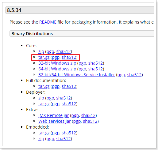 wget http://mirrors.tuna.tsinghua.edu.cn/apache/tomcat/tomcat-8/v8.5.34/bin/apachetomcat-8.5.34.tar.gz