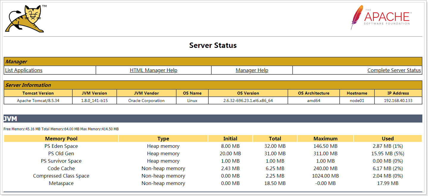 点击“Server Status”,输入用户名、密码进行登录,tomcat/tomcat