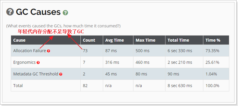从GC原因的可以看出,年轻代大小设置不合理,导致了多次GC。