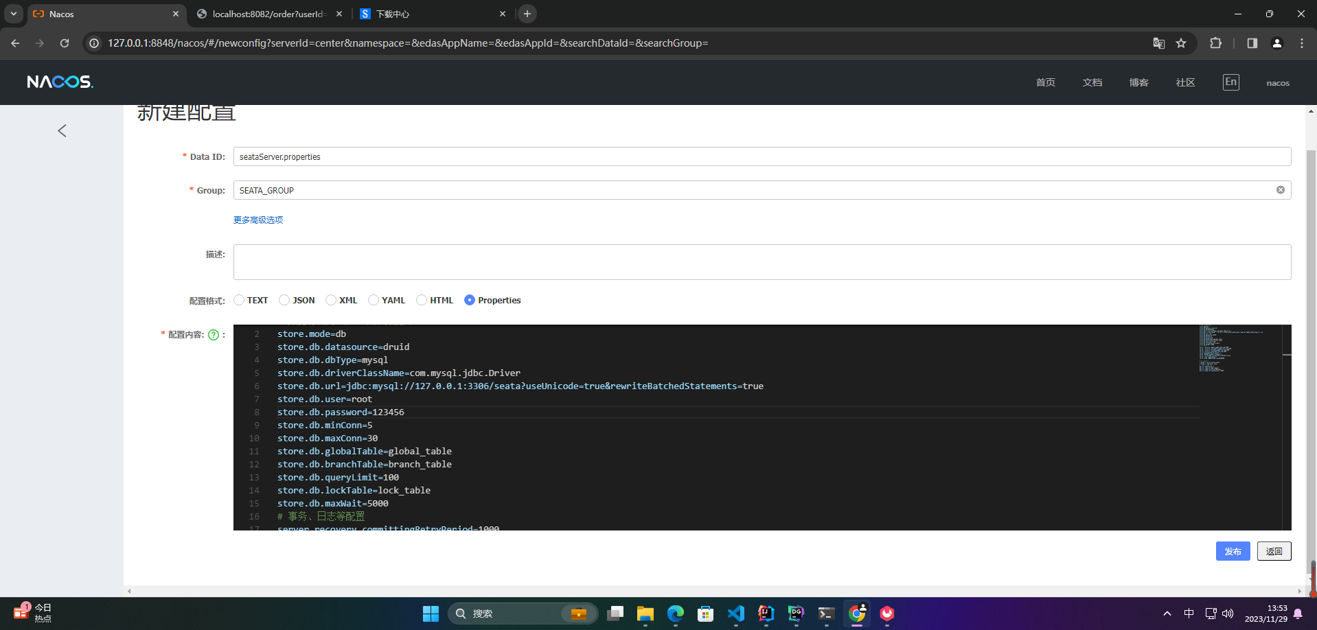 特别注意,为了让tc服务的集群可以共享配置,我们选择了nacos作为统一配置中心。因此服务端配置文件seataServer.properties