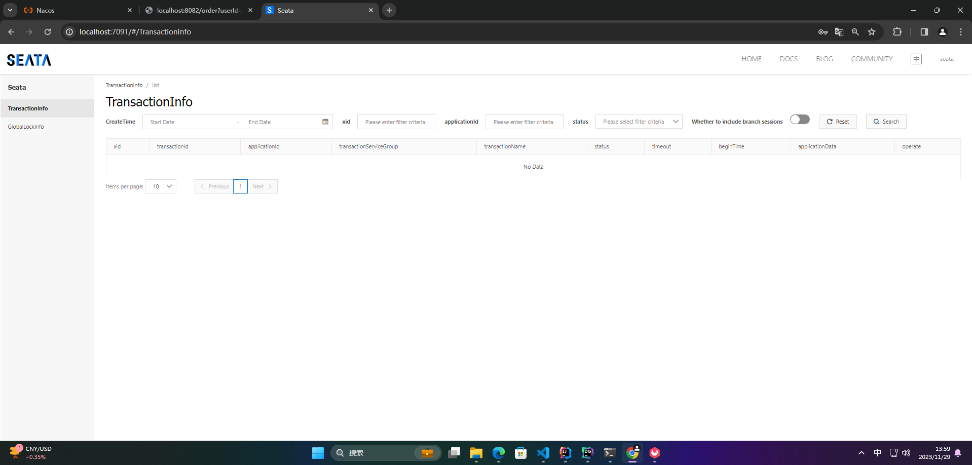 打开浏览器,访问seata控制台;地址:http://localhost:7091