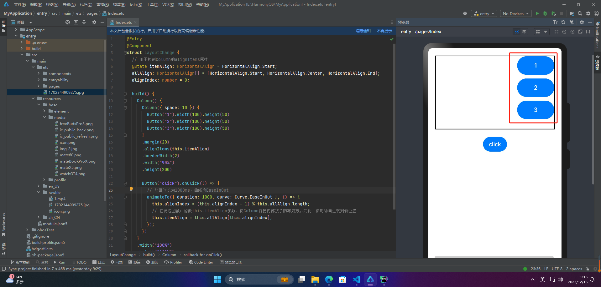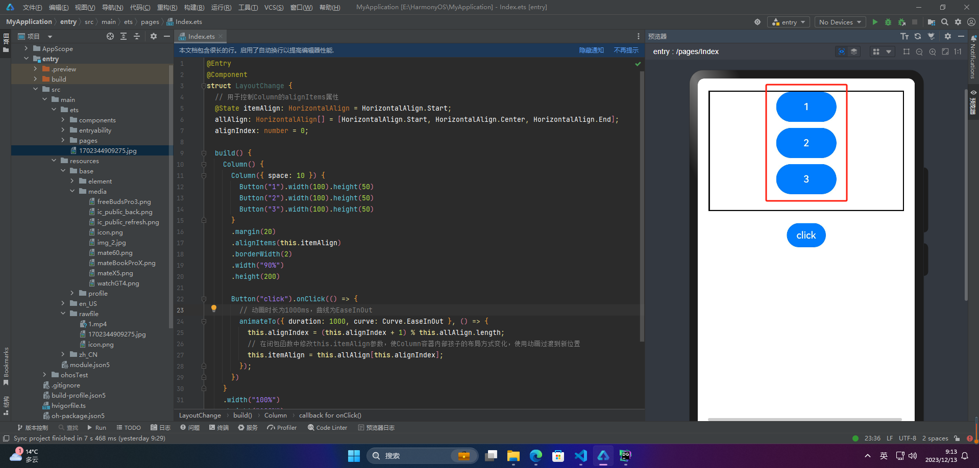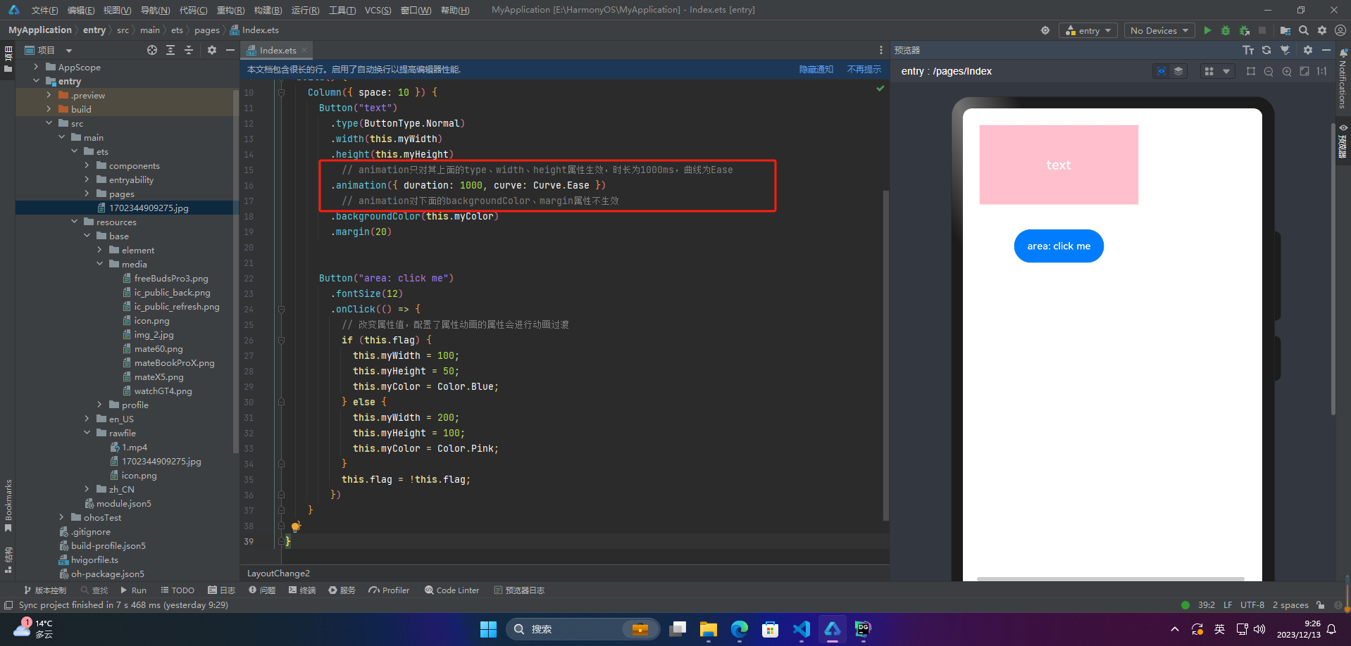 显式动画(animateTo)和属性动画(animation)是ArkUI提供的最基础和常用的动画功能。这些动画功能可以在布局属性(例如尺寸属性、位置属性)发生变化时使用。通过属性动画或显式动画,可以按照指定的动画参数过渡到新的布局参数状态。这些动画功能的使用可以使UI变得更加生动和有趣。