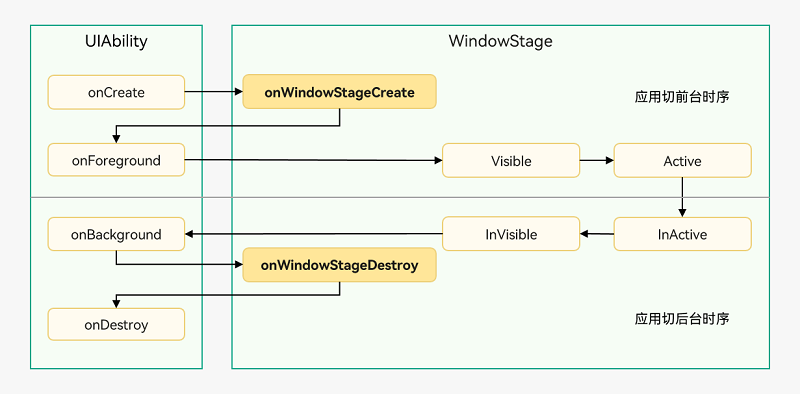WindowStageCreate和WindowStageDestroy是用于创建和销毁窗口阶段的方法。